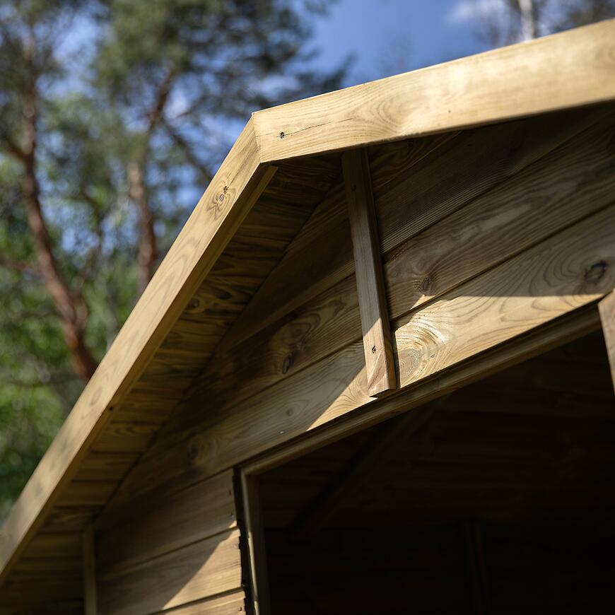 • Wykonany z drewna świerkowego o grubości 13 mm, poddanego impregnacji ciśnieniowej, co zapewnia odporność na wilgoć i trwałość przez lata.