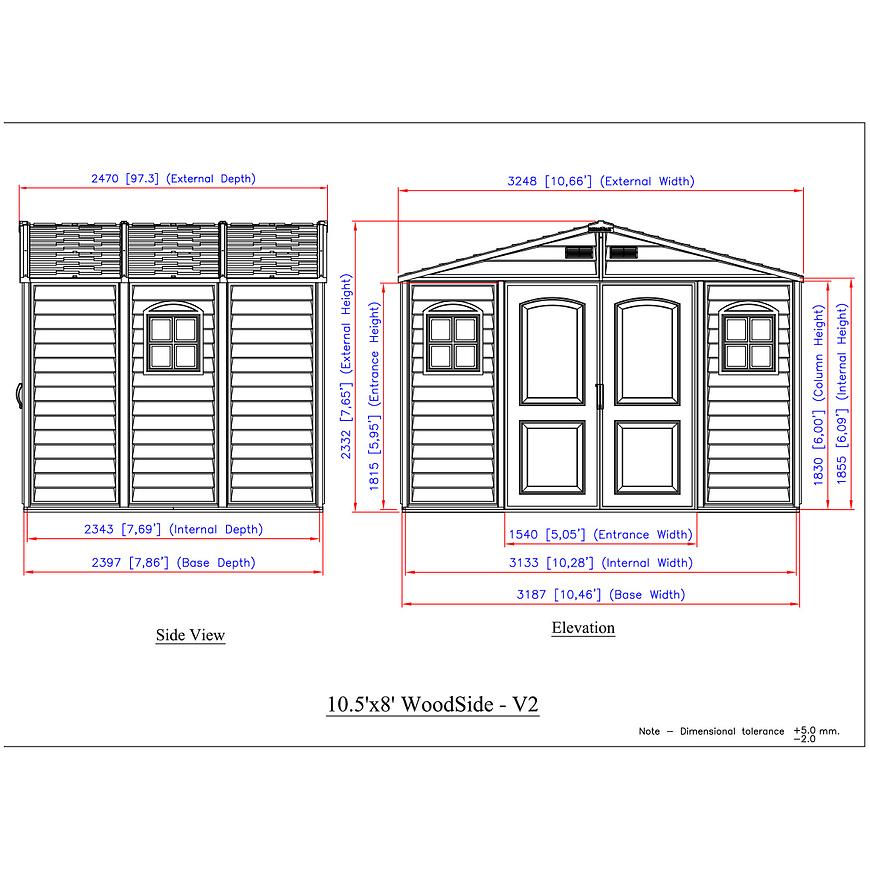 Dzięki swojej przestrzeni wewnętrznej o powierzchni 7,34 m², WoodSide oferuje mnóstwo miejsca na przechowywanie różnych rzeczy, od narzędzi ogrodowych po meble ogrodowe. Trzy okna zapewniają naturalne oświetlenie wnętrza, a dołączony zestaw wentylacyjny zapewnia odpowiednią cyrkulację powietrza, chroniąc przechowywane przedmioty przed wilgocią i pleśnią.