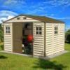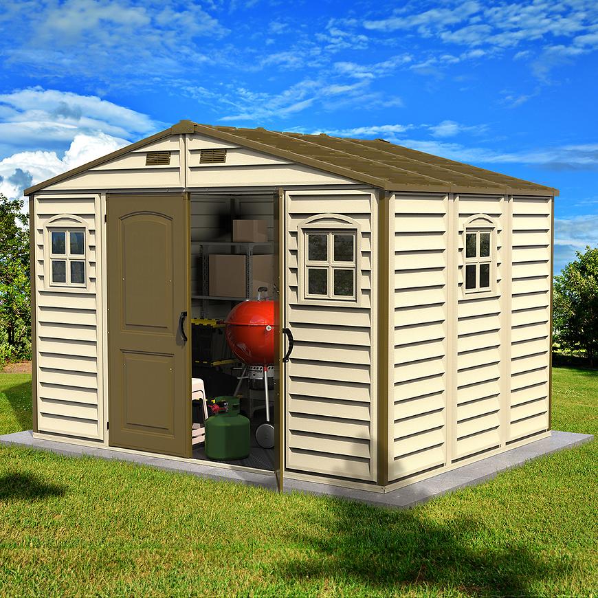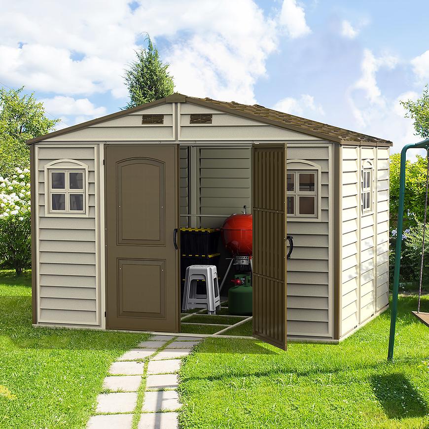 WoodSide to niezawodny domek ogrodowy, który idealnie spełni Twoje potrzeby przechowywania. Wykonany z wytrzymałej, ognioodpornej żywicy winylowej, charakteryzuje się solidną konstrukcją z metalowym wzmocnieniem, co gwarantuje jego trwałość i wytrzymałość przez wiele lat.