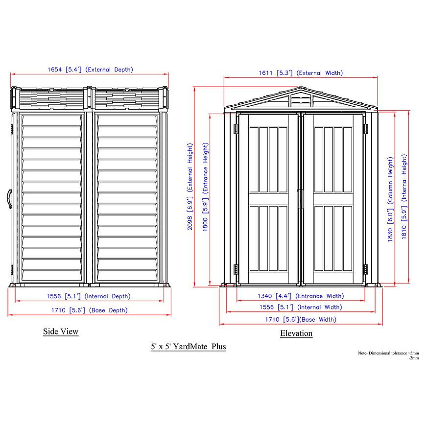 YardMate PLUS to solidny i praktyczny domek ogrodowy, który doskonale sprawdzi się na mniejszych podwórkach lub tarasach. Jego kompaktowe wymiary (szerokość 171 cm, głębokość 171 cm, wysokość 210 cm) pozwalają efektywnie wykorzystać dostępną przestrzeń, zapewniając przy tym wygodną wysokość ścian wewnętrznych.