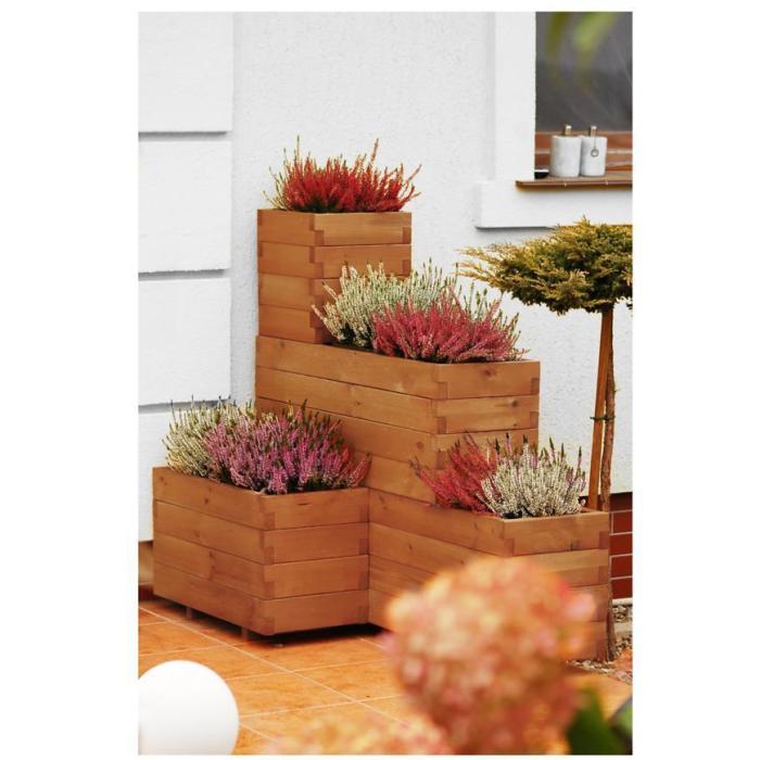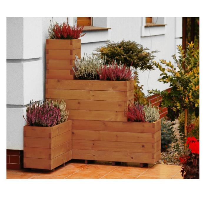 Doniczki wykonane są z drewna w kolorze olchy. Drewniane doniczki to świetny dodatek i urozmaicenie aranżacji ogrodowych, balkonowych czy tarasowych. Dają możliwość stworzenia różnych kompozycji kwiatowych, które zwrócą uwagę każdego.