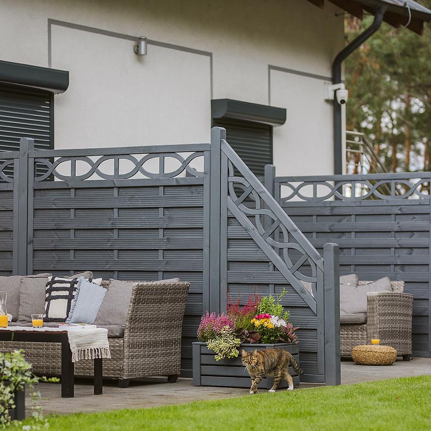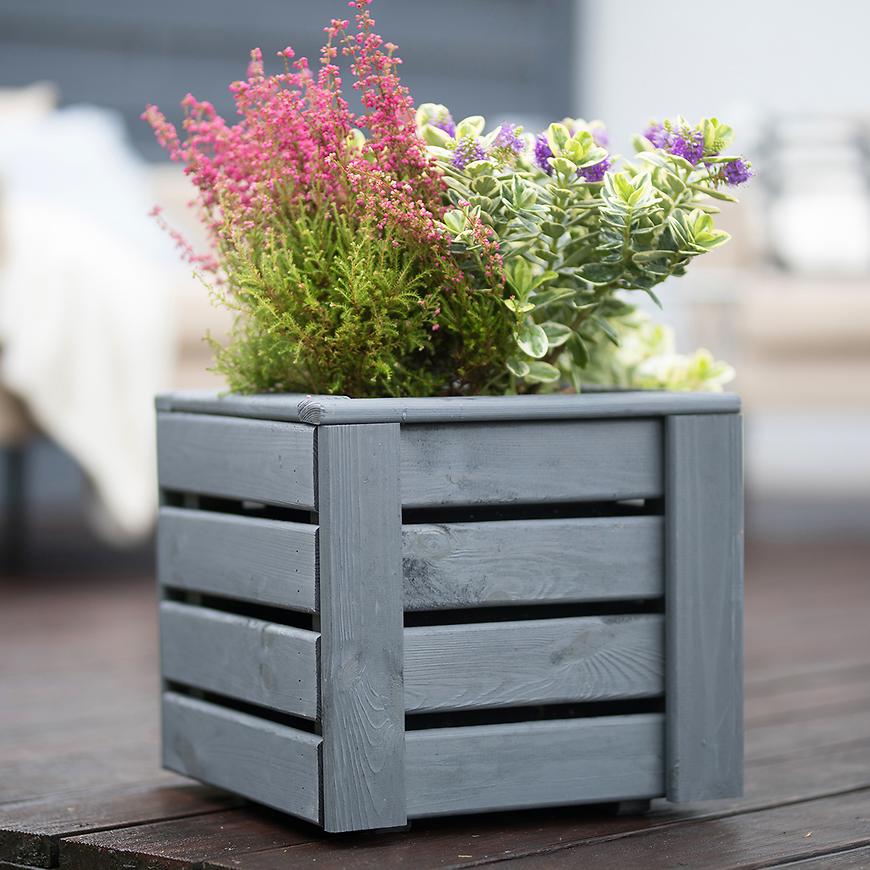 Donica Kwartet I w kolorze szarym to doskonały wybór dla osób poszukujących eleganckiego i nowoczesnego pojemnika na rośliny do swojego ogrodu, tarasu lub balkonu. Wykonana z solidnej deski o grubości 16 mm, donica zachwyca prostotą formy i wysoką jakością wykonania.