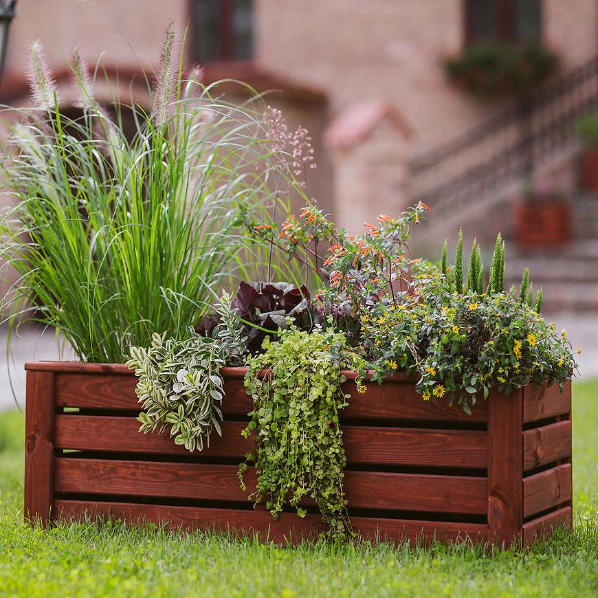 Kolor brązowy nadaje donicy rustykalny i naturalny charakter, doskonale komponując się z otoczeniem natury. Pokryta lazurą w kolorze teak, donica nie tylko prezentuje się elegancko, ale także jest dodatkowo zabezpieczona przed działaniem warunków atmosferycznych, co gwarantuje jej długotrwałą trwałość.