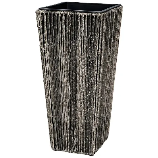 Doniczka Biania w eleganckim szarym kolorze to wyjątkowy dodatek do każdego wnętrza i ogrodu. Wykonana ręcznie ze skręcanej wikliny, łączy naturalny urok materiału z trwałością i solidnym wykonaniem. Jej wymiary 28x28x60 cm sprawiają, że doskonale sprawdzi się zarówno jako dekoracja w salonie, przedpokoju, jak i na tarasie czy balkonie. Doniczka nie posiada funkcji nawadniania, co pozwala na swobodne aranżowanie jej z różnorodnymi roślinami w dowolnych pojemnikach wewnętrznych. Szary odcień wprowadza nowoczesny i stylowy akcent, który harmonijnie komponuje się z różnymi aranżacjami, podkreślając naturalne piękno roślin i przestrzeni.