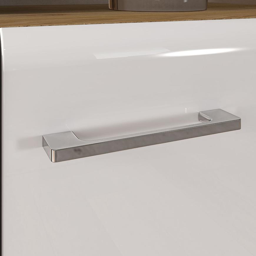 Połyskujące wykończenie frontów dodaje elegancji, odbijając światło i przyciągając uwagę. Matowe wykończenie korpusu sprawia, że dostawka jest łatwa w utrzymaniu i odporna na zarysowania. Konstrukcja frontów oparta na płycie MDF gwarantuje solidność i trwałość, natomiast korpus wykonany z płyty wiórowej laminowanej zapewnia stabilność i odporność na uszkodzenia.