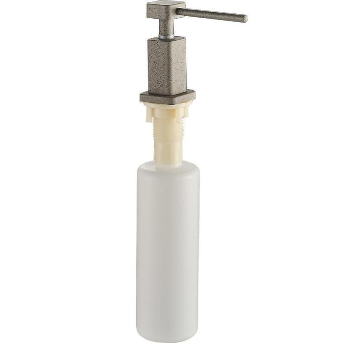Dozownik szary ,,Cubic” o pojemności ok. 300 ml wykonany z tworzywa sztucznego jest do montażu na zlewozmywaku z odkręcaną pompką i napełnianiem od góry.