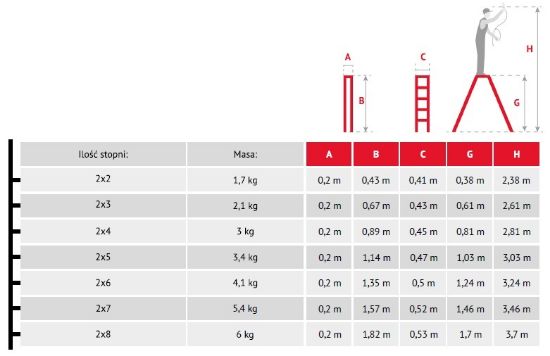 Liczba szczebli wynosząca 7 oraz nośność do 125 kg czynią tę drabinę idealnym narzędziem do różnorodnych zastosowań na różnych wysokościach. Jej lekka konstrukcja sprawia, że jest łatwa w transporcie i przechowywaniu, co zwiększa jej praktyczność.