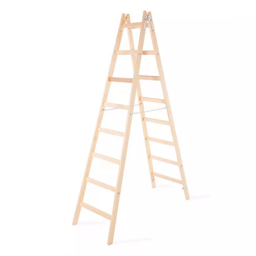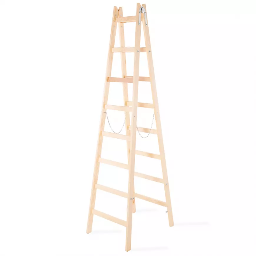 Drabina drewniana dwustronna o 8 stopniach i nośności 150 kg to niezastąpiony sprzęt do prac malarskich w domu. Solidna konstrukcja wykonana z drewnianych elementów, uzupełniona ocynkowanymi wzmocnieniami, zapewnia trwałość i bezpieczeństwo podczas użytkowania. To idealne narzędzie do codziennych prac na wysokości wewnątrz budynku, szczególnie podczas malowania pomieszczeń.