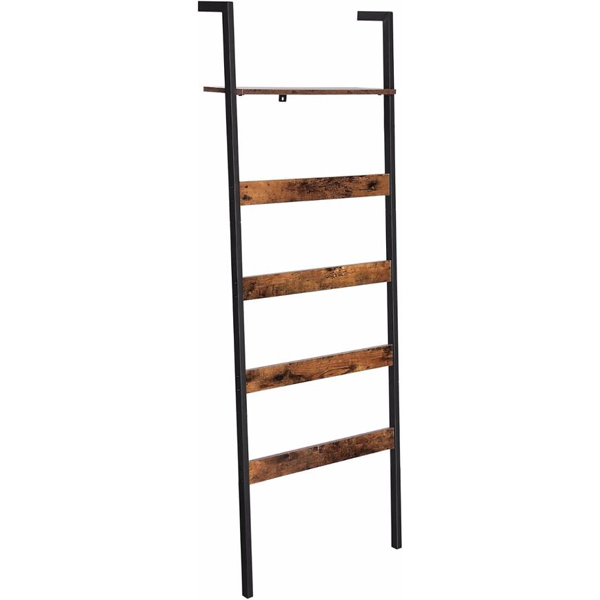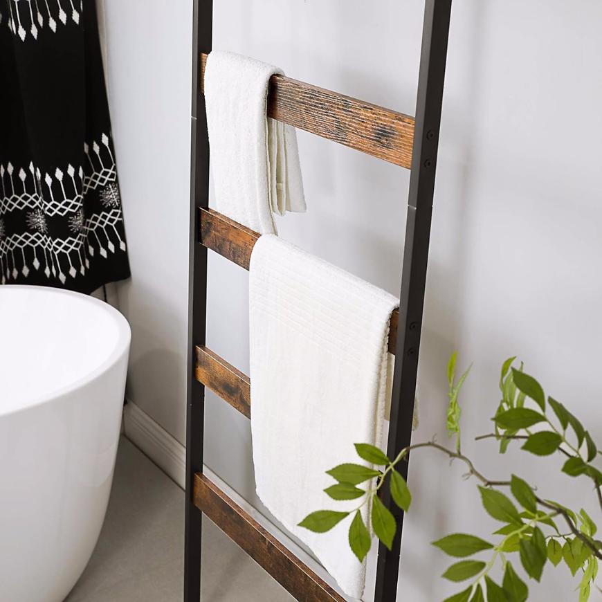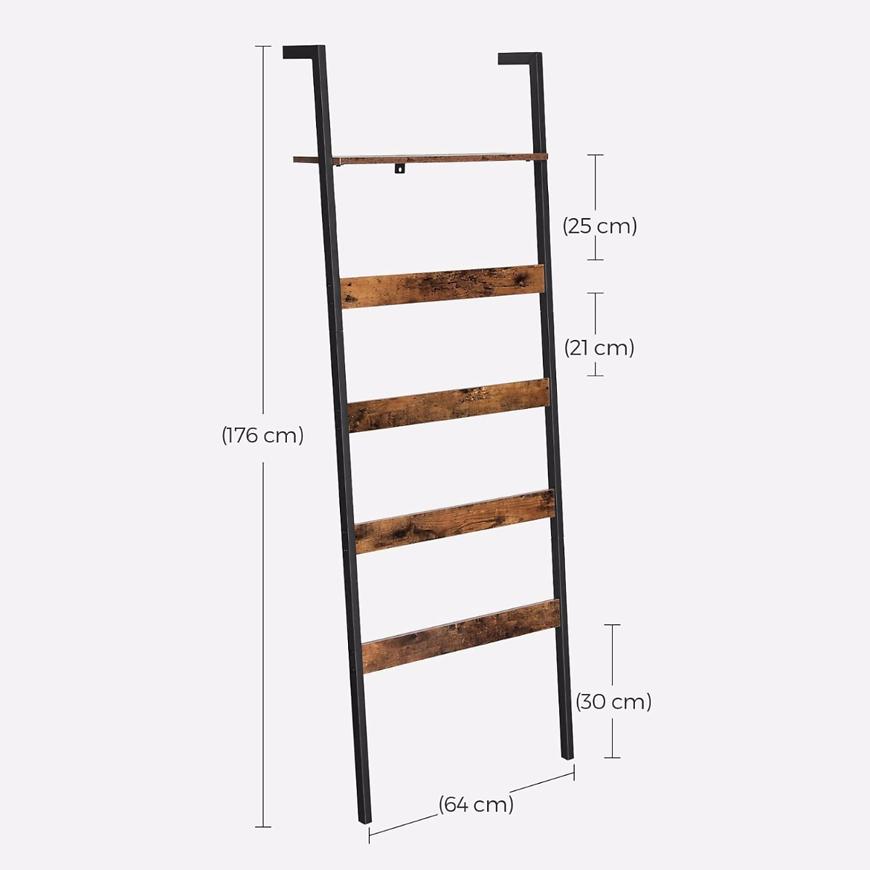 Drabinka łazienkowa Rustic w eleganckim połączeniu brązu i czerni to funkcjonalny i stylowy dodatek do każdej łazienki. Wykonana z trwałej płyty wiórowej laminowanej oraz wytrzymałego metalu, łączy w sobie solidność i nowoczesny design. Dzięki wymiarom 64 cm szerokości i 176 cm wysokości, drabinka oferuje praktyczne miejsce na ręczniki, nie zajmując przy tym dużo miejsca.
