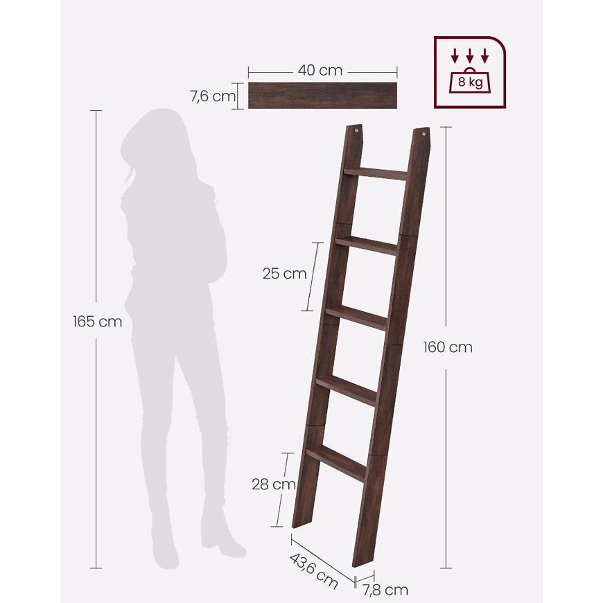 Z kompaktowymi wymiarami 43,6 cm szerokości, 160 cm wysokości oraz 7,8 cm głębokości, drabinka Rustic zajmuje niewiele miejsca, jednocześnie oferując praktyczne miejsce do przechowywania ręczników. Konstrukcja stojąca pozwala na łatwe ustawienie w dowolnym miejscu, bez konieczności montażu na ścianie.