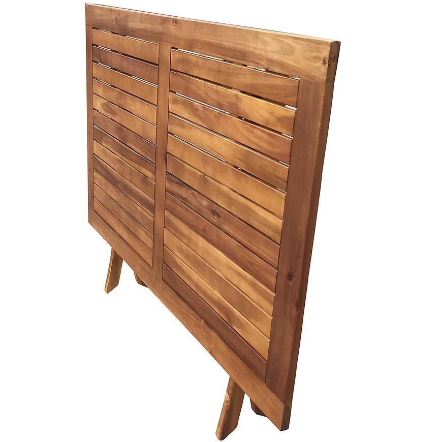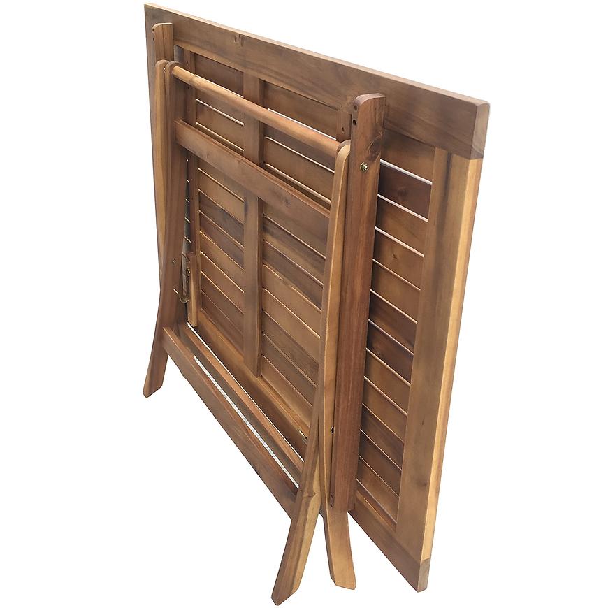 Solidna konstrukcja oraz krzyżowe wzmocnienie nóg zapewniają stabilność, a możliwość składania stołu pozwala na wygodne przechowywanie i oszczędność miejsca. Naturalne usłojenie drewna widoczne na blacie tworzy niepowtarzalny efekt wizualny, który dodaje uroku każdemu spotkaniu na świeżym powietrzu.
