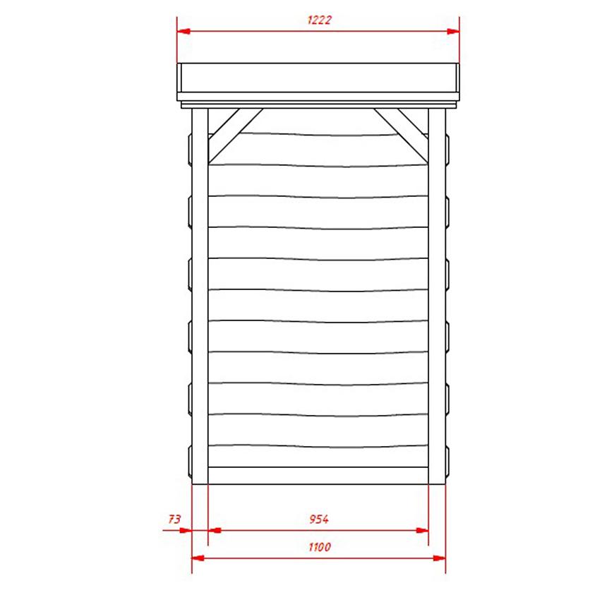 Drewutnia wyposażona jest w jednospadowy dach pokryty papą asfaltową, który skutecznie chroni drewno przed deszczem i śniegiem. Choć konstrukcja nie posiada podłogi, drewno można przechowywać na paletach lub suchej nawierzchni, co zapewni dobrą wentylację i utrzymanie opału w suchym stanie.