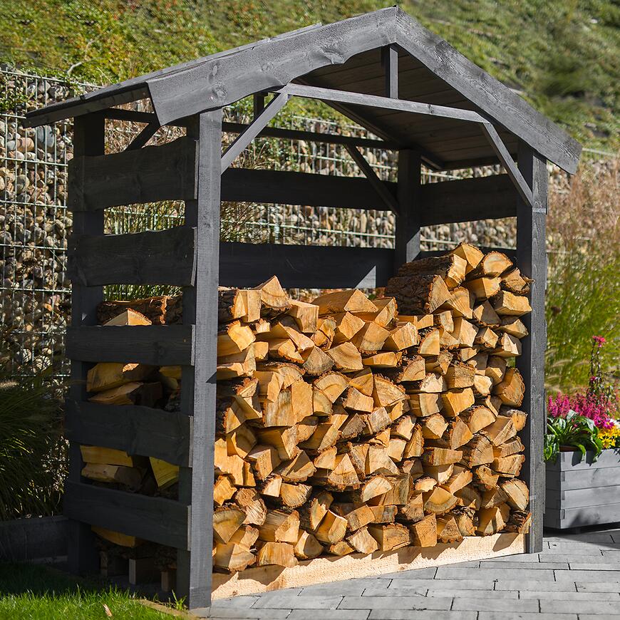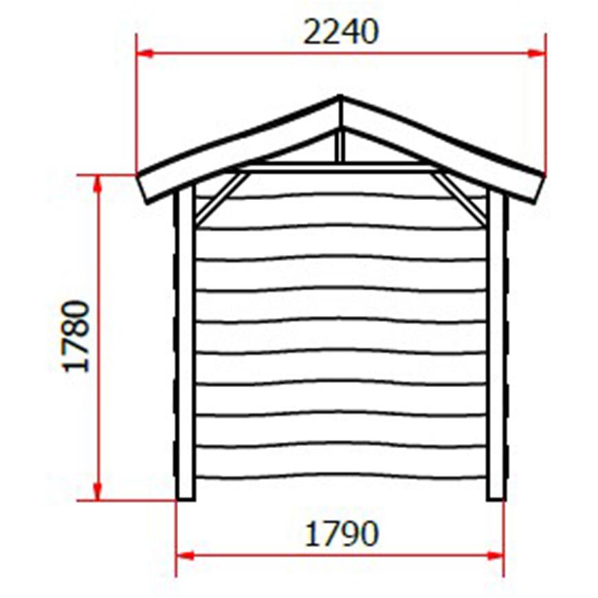 Korpus drewutni zrobiono z drewna świerkowego, co zapewnia odporność na warunki atmosferyczne i wieloletnią trwałość. Brak metalowego wzmocnienia konstrukcji nie wpływa na stabilność – solidna rama i przemyślana konstrukcja gwarantują bezpieczeństwo przechowywania drewna.