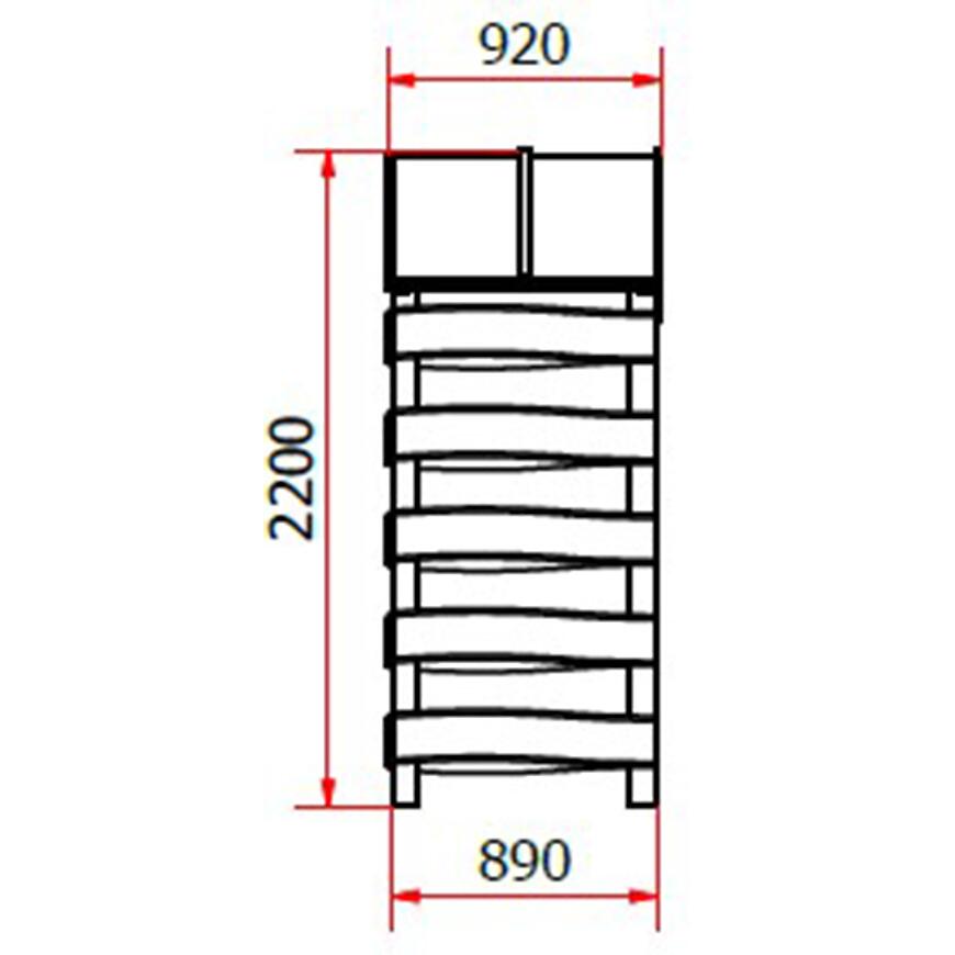 Produkt oferuje przestrzeń o wymiarach 180 cm szerokości, 90 cm głębokości i 220 cm wysokości, co zapewnia wystarczającą pojemność dla dużych ilości drewna. Otwarta konstrukcja ułatwia dostęp i układanie opału.