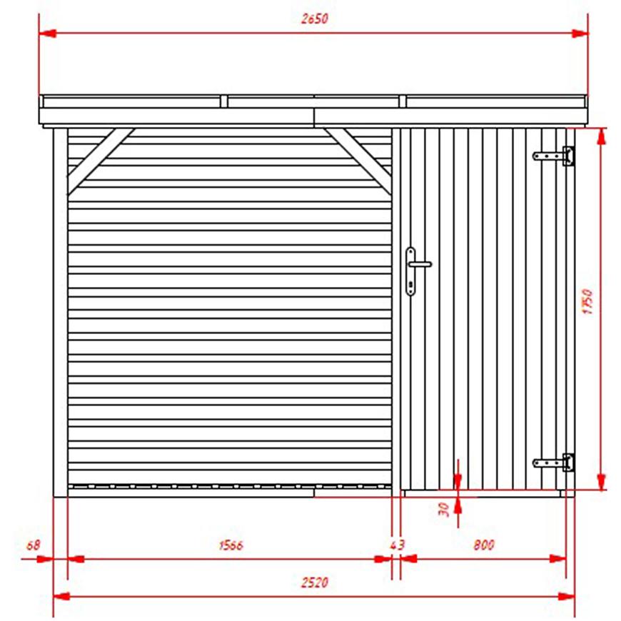 Drewutnia z szafą Bergen 250x95x190 cm to funkcjonalna i trwała konstrukcja ogrodowa do przechowywania drewna opałowego oraz narzędzi. Drewno świerkowe, jednospadowy dach i zamykana szafa łączą wytrzymałość z praktycznym zastosowaniem. Duża przestrzeń do składowania drewna i dodatkowa szafa narzędziowa sprawiają, że Bergen jest idealnym rozwiązaniem dla osób ceniących porządek i wygodę w ogrodzie.