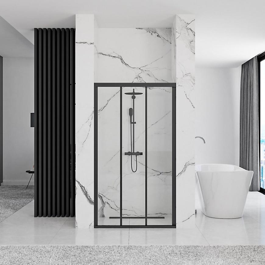 Drzwi prysznicowe Alex 100x190 black Rea K9639 to elegancka i funkcjonalna propozycja do nowoczesnej łazienki. Mają wysokość 190 cm i szerokość 100 cm, a ich waga wynosi 34 kg. Wykonane są z hartowanego szkła o grubości 4 mm, osadzonego w stabilnym, czarnym profilu zamkniętym.