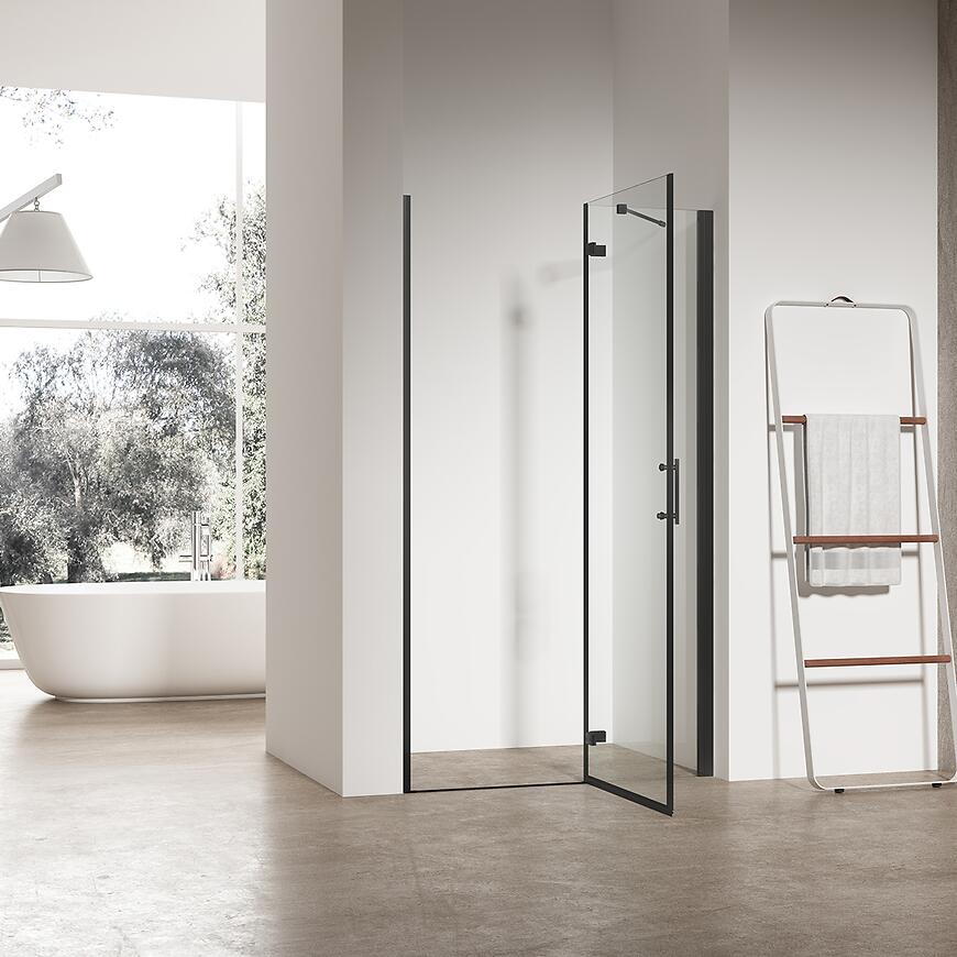 Drzwi prysznicowe Jazz 100x190 Black marki AQUA MERCADO to nowoczesne drzwi otwierane o wysokości 190 cm i szerokości 100 cm, wykonane z hartowanego szkła o grubości 6 mm w kolorze bezbarwnym. Czarny, otwarty profil nadaje elegancki wygląd, a magnetyczne uszczelki oraz powłoka ułatwiająca czyszczenie zwiększają komfort użytkowania. Regulacja na profilu przyściennym umożliwia precyzyjne dopasowanie do wnęki prysznicowej. Drzwi ważą 33 kg i należą do serii JAZZ, łącząc nowoczesny design z funkcjonalnością i trwałością.