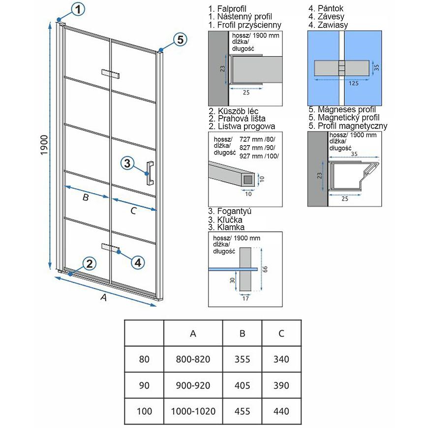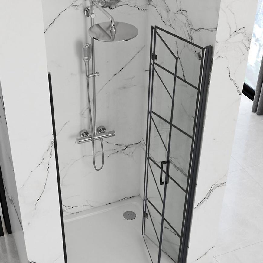 Drzwi prysznicowe Molier 80x190 black Rea K8537 to eleganckie i funkcjonalne rozwiązanie do każdej łazienki o wymiarach 80x190 cm. Wykonane z hartowanego, bezbarwnego szkła o grubości 6 mm, wyposażone w czarny otwarty profil z regulacją przyścienną. Drzwi posiadają magnetyczne uszczelki i powłokę ułatwiającą czyszczenie, co zapewnia wygodę użytkowania i utrzymanie czystości. Mechanizm składany pozwala na oszczędność miejsca, a stabilna konstrukcja waży 25 kg, gwarantując trwałość i bezpieczeństwo. Produkt łączy nowoczesny design z praktycznym zastosowaniem w każdej łazience.