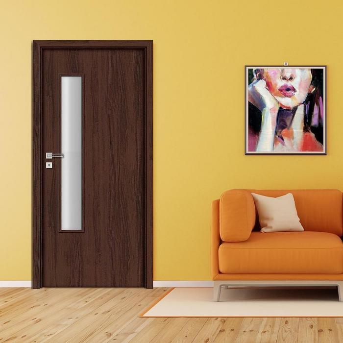 W drzwiach zastosowano szkło satynowe, które przepuszcza naturalne światło, nie ujawniając całkowicie wnętrza pomieszczenia. To rozwiązanie doskonale sprawdzi się w pokojach dziennych, gabinetach i sypialniach, pozwalając zachować przyjemną atmosferę przy zachowaniu prywatności.