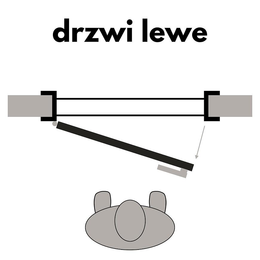 Drzwi otwierają się w lewo, wyposażono je w zamek Klucz 72 oraz trzy zawiasy, co ułatwia montaż i codzienną eksploatację. Brak klamki pozwala na dowolny dobór stylu i koloru akcesoriów, dopasowując skrzydło do reszty aranżacji.