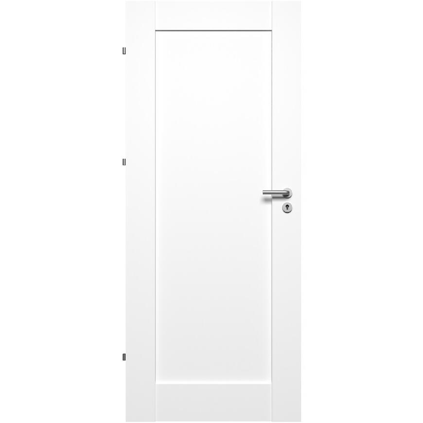 LIZBONA PEŁNA 0*0 90L wyróżnia się minimalistycznym, białym wykończeniem, które sprawia, że drzwi pasują do wnętrz nowoczesnych, klasycznych oraz skandynawskich.
