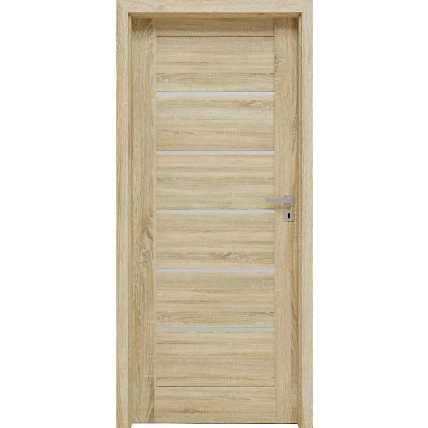 Drzwi wewnętrzne Murcia 3 90P Dąb Sonoma KL to stylowe drzwi ramowe o wymiarach 2040 × 944 × 40 mm, wykonane z płyty MDF i wykończone okleiną Enduro 3D w kolorze dąb sonoma. Drzwi otwierane na prawo wyposażone są w trzy zawiasy, zamek na klucz (Klucz 72) oraz matowe przeszklenie z satyny, które subtelnie przepuszcza światło, nadając wnętrzu przytulny charakter. Zaokrąglone krawędzie Soft Line zwiększają bezpieczeństwo i estetykę drzwi, czyniąc je praktycznym i eleganckim elementem każdego pomieszczenia.