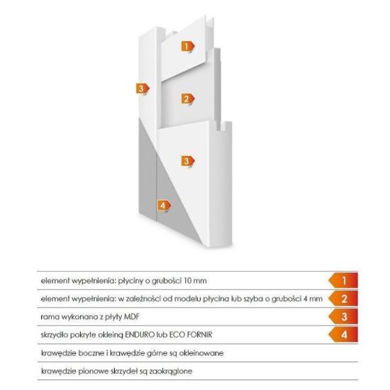 Drzwi wewnętrzne z serii SAPRI 3 świetnie sprawdzą się w domowych pomieszczeniach łącząc funkcjonalnośc i elegancję. Wykonane z najwyższej jakości materiałów, są solidne i wytrzymałe. Drzwi sprzedawane są bez ościeżnicy i klamki.