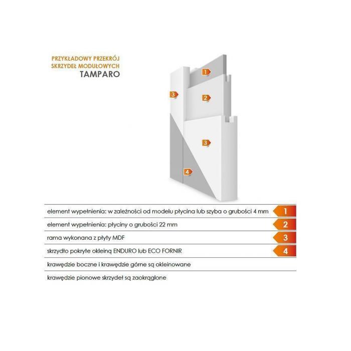 Drzwi wewnętrzne z serii Tamparo świetnie sprawdzą się w domowych pomieszczeniach łącząc funkcjonalnośc i elegancję. Wykonane z najwyższej jakości materiałów, są solidne i wytrzymałe. Drzwi sprzedawane są bez ościeżnicy i klamki.