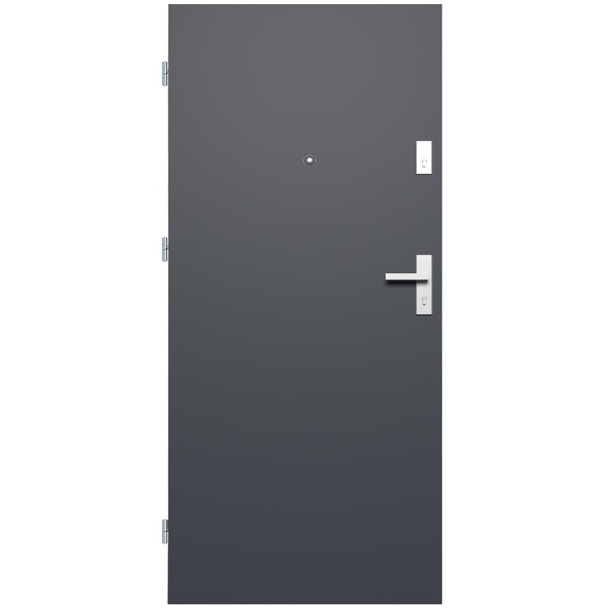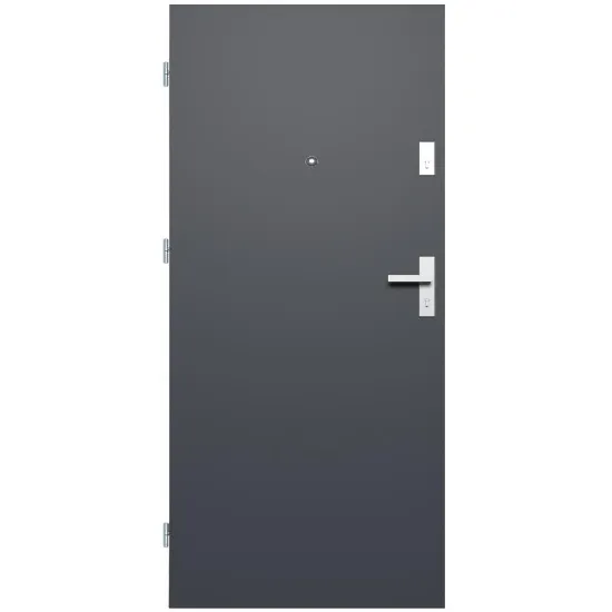 Drzwi wyposażone są w 3 solidne zawiasy, które gwarantują stabilność i długotrwałe użytkowanie. W zestawie znajduje się zamek 2XWB, zapewniający większe bezpieczeństwo i komfort użytkowania. Wykończenie krawędzi typu Felzkant nadaje konstrukcji elegancki i wyraźnie zarysowany profil.