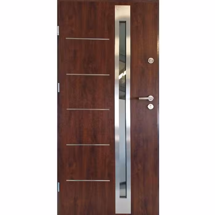 Drzwi zewnętrzne z kolekcji Cordoba to połączenie funkcjonalności z elegancją. Solidne wykonanie drzwi zapewniają najwyższej jakości materiały użyte podczas produkcji - ocynkowana blacha, stal nierdzewna oraz szyba reflex. Drzwi posiadają zamek dolny i górny, ościeżnicę w kolorze skrzydła, 3 zawiasy oraz niski próg ze stali nierdzewnej. Dodatkowo ocieplone są spienionym polistyrenem, co poprawia ich właściwości izolacyjne. Współczynnik U wynosi 1.3 W/(m2K).