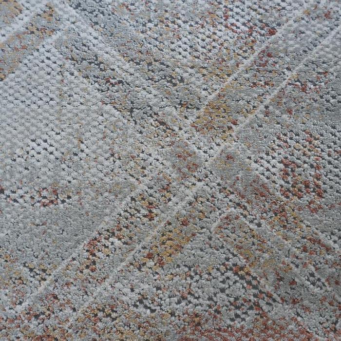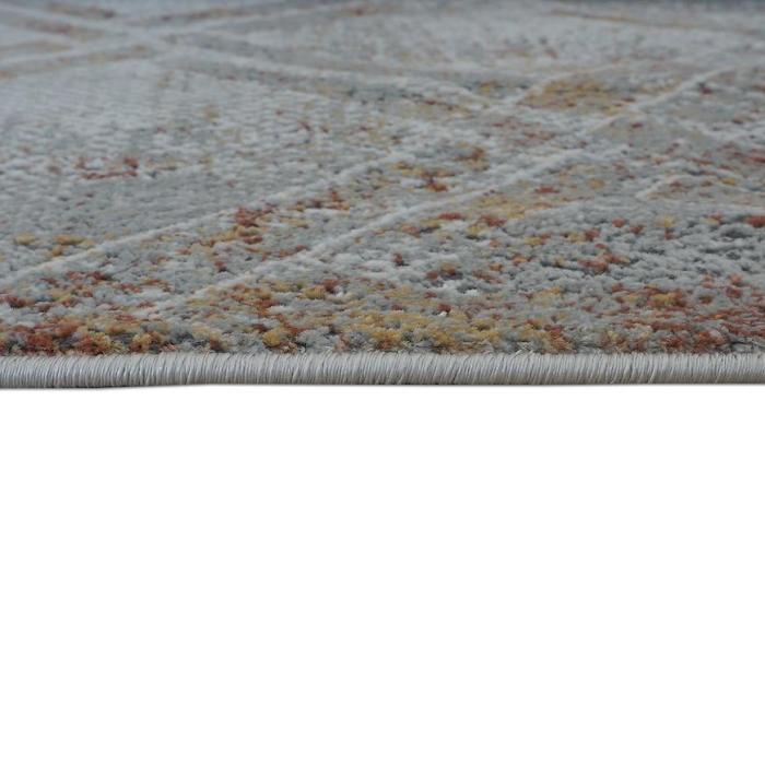 Dywan wykonany jest w 100% z poliestru. Dzięki swojej kolorystyce wpasuje się w większość aranżacji. Dywan nie chłonie wilgoci, jest również odporny na plamy.