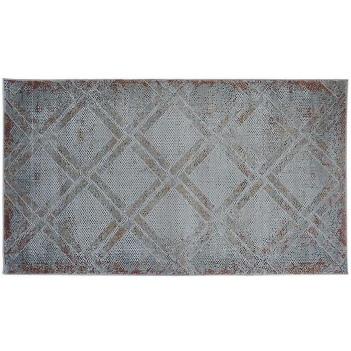 Dywan wykonany jest w 100% z poliestru. Dzięki swojej kolorystyce wpasuje się w większość aranżacji. Dywan nie chłonie wilgoci, jest również odporny na plamy.
