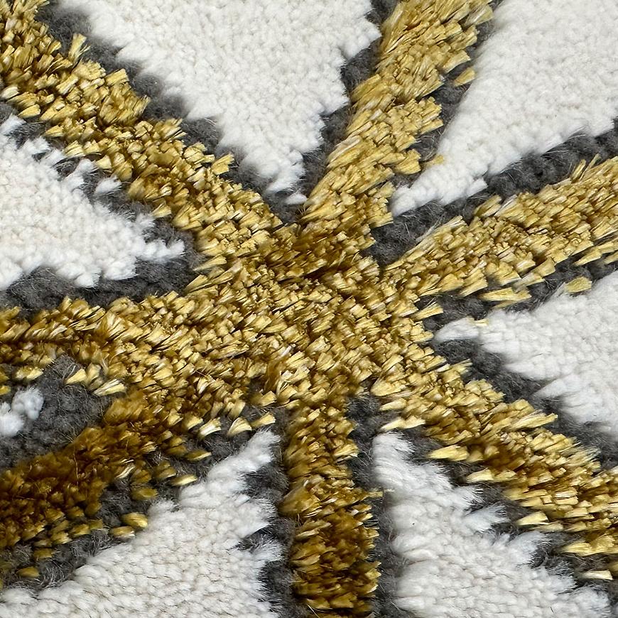Kolekcja Diamond wyróżnia się geometrycznym wzorem, nadającym pomieszczeniu nowoczesny charakter. Efektowna kombinacja wyrazistych kolorów z dodatkiem złota lub srebra sprawia, że dywan ten emanuje glamour i luksusem, stanowiąc unikalny element dekoracyjny każdego wnętrza.