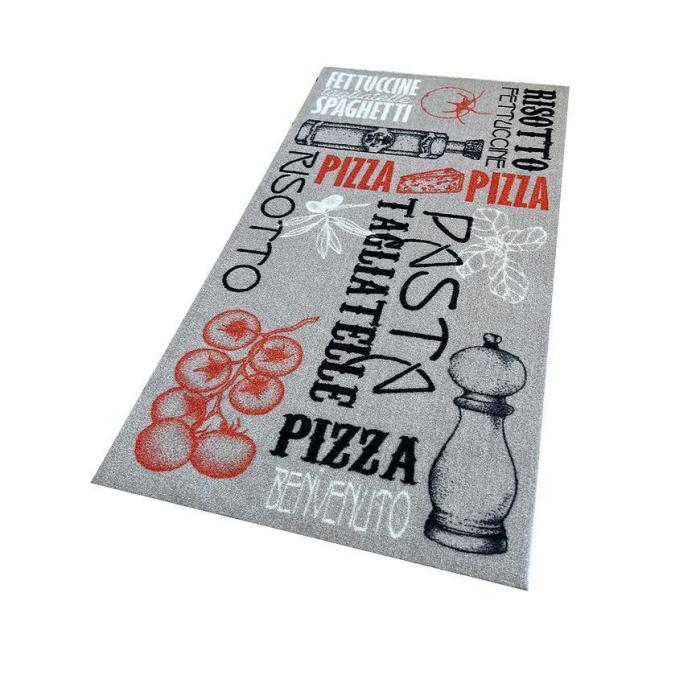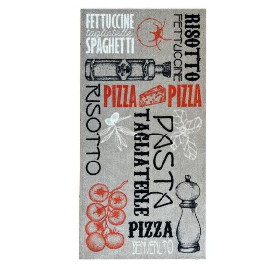 Dywanik do kuchni wykonany z poliamidu na podkładzie PCV, idealnie sprawdzi się w kuchni pochłaniając wilgoć i zbierając drobnoziarnisty brud oraz kurz. Ciekawe wzornictwo podkreśli wygląd każdego stylowego i nowoczesnego wejścia do domu czy mieszkania.