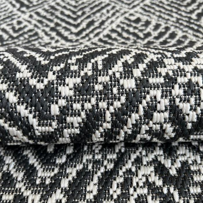 Dywan wykonany z wysokiej jakości przędzy polipropylenowej, która zapewnia komfort podczas użytkowania, ale także utrzymania dywanu w czystości. Dodatkową zaletą jest płaskie tkanie. Brak runa strzyżonego pozwala na łatwe utrzymanie czystości, ze względu na to, że zanieczyszczenia pozostają na powierzchni i łatwo je usunąć. Dzięki zastosowanemu materiałowi, dywany są odporne na działanie słońca oraz na mole.