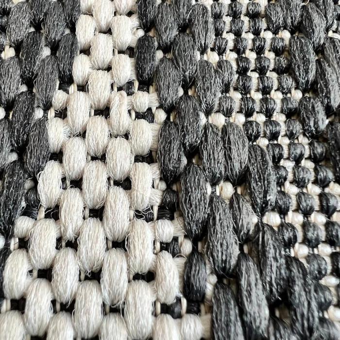 Dywan wykonany z wysokiej jakości przędzy polipropylenowej, która zapewnia komfort podczas użytkowania, ale także utrzymania dywanu w czystości. Dodatkową zaletą jest płaskie tkanie. Brak runa strzyżonego pozwala na łatwe utrzymanie czystości, ze względu na to, że zanieczyszczenia pozostają na powierzchni i łatwo je usunąć. Dzięki zastosowanemu materiałowi, dywany są odporne na działanie słońca oraz na mole.