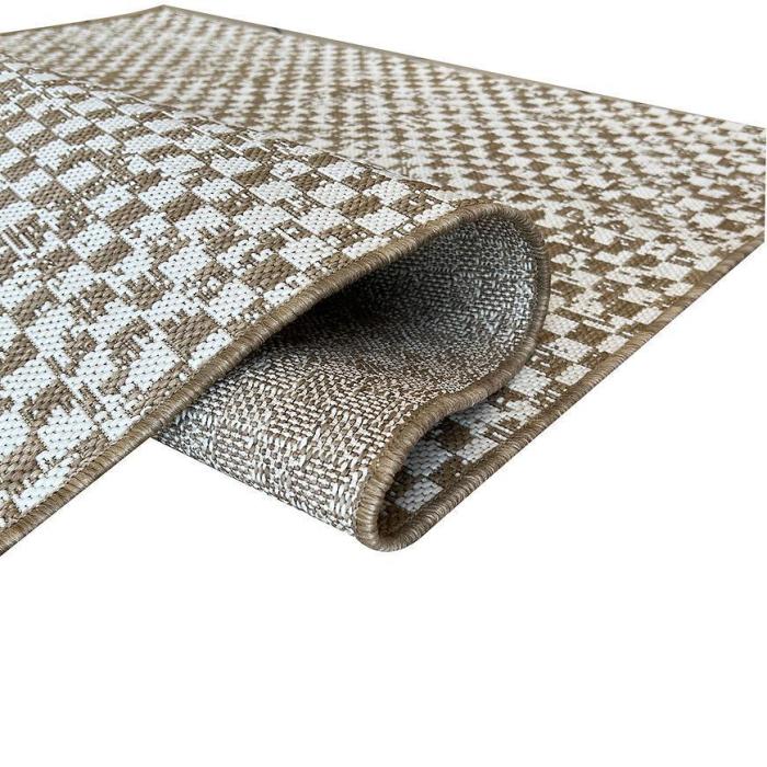 Dywan tkany na płasko na sposób plecionej maty jest bardzo łatwy w utrzymaniu czystości, dzięki przędzy polipropylenowej jest odporny na działanie słońca i również jest odporny na mole. Można go stosować na zewnątrz i wewnątrz.