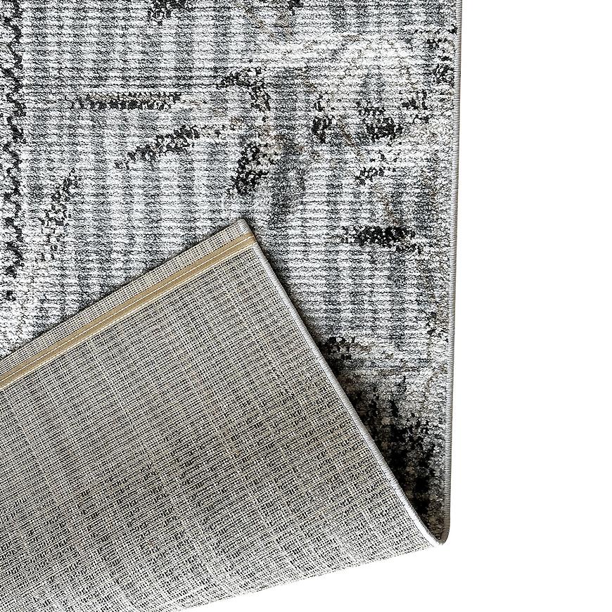 Abstrakcyjny wzór dywanu w szarych i kremowych odcieniach tworzy harmonijną kompozycję. Delikatne przejścia między tymi dwoma kolorami nadają dywanowi wyrafinowany i nowoczesny wygląd. Wzór jest wystarczająco subtelny, aby nie przytłaczać przestrzeni, ale jednocześnie dodaje dywanowi charakteru i oryginalności.