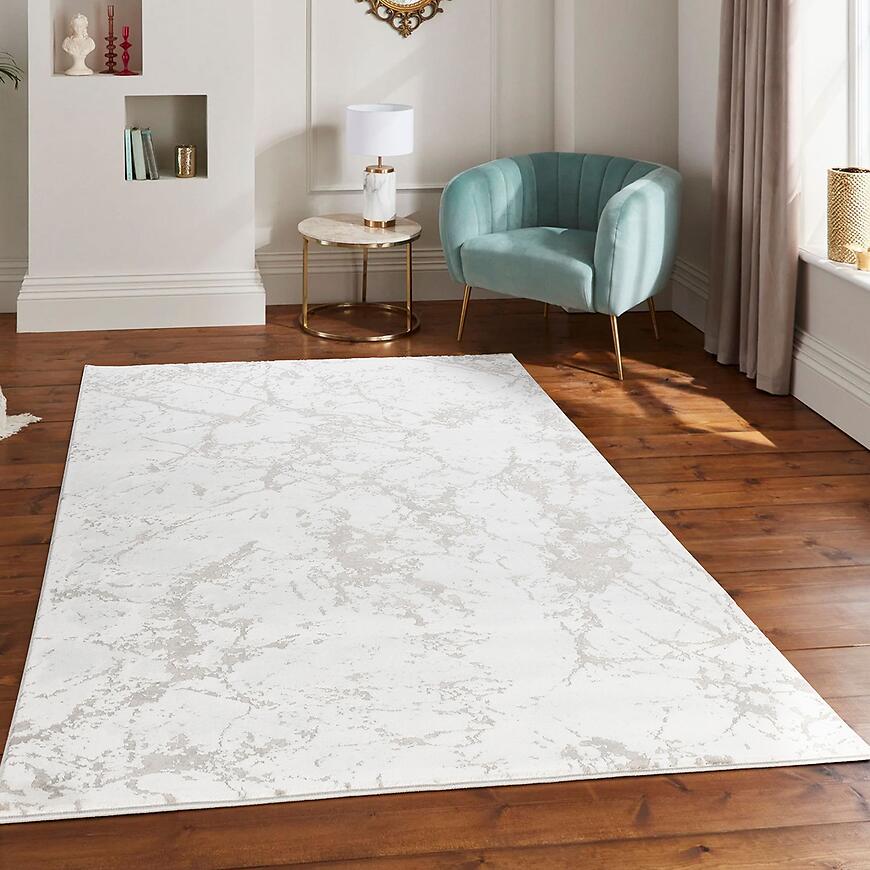 Dywan wyróżnia się subtelnym geometrycznym wzorem w kremowych odcieniach, który nadaje wnętrzom elegancji i harmonii. Prostokątny kształt 80 × 150 cm sprawia, że dywan doskonale pasuje do salonu, sypialni, pokoju dziecięcego lub biura, wprowadzając nowoczesny akcent do aranżacji.