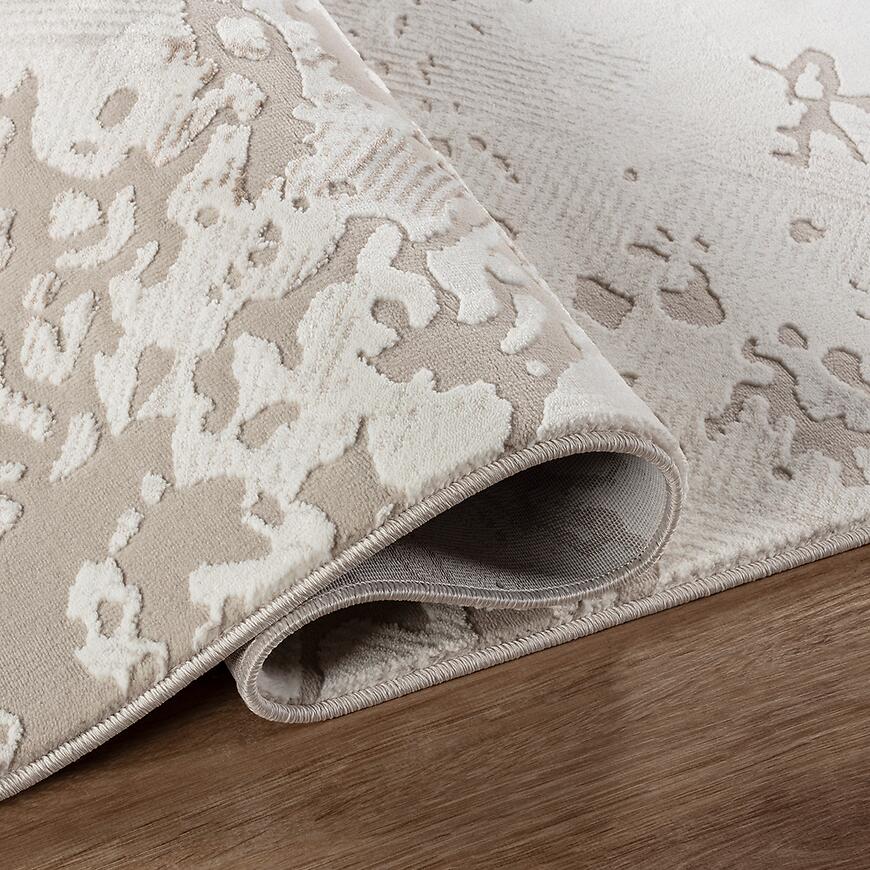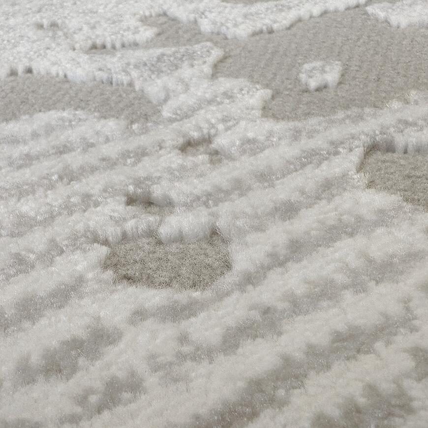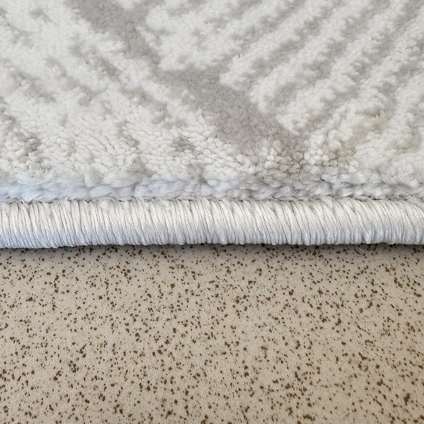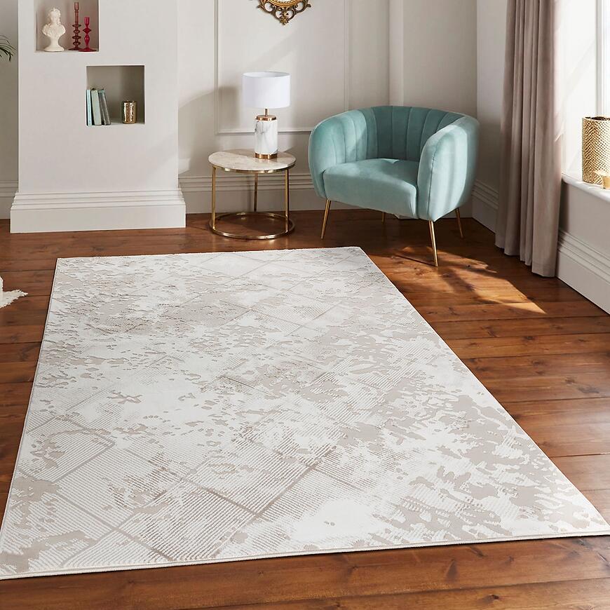 Dywan wyróżnia się subtelnym geometrycznym wzorem w odcieniach beżu, który wprowadza elegancję i harmonię do wnętrza. Prostokątny kształt 80 × 150 cm sprawia, że dywan doskonale sprawdza się w salonie, sypialni, pokoju dziecięcym lub biurze, nadając przestrzeni nowoczesny charakter.