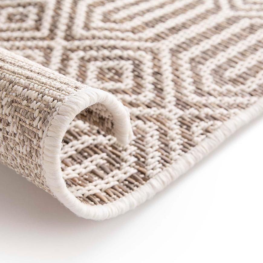 Wykonany w 100% z polipropylenu, dywan Indy jest wyjątkowo trwały i odporny na działanie czynników zewnętrznych, takich jak wilgoć czy promieniowanie UV, co czyni go idealnym rozwiązaniem do użytku zewnętrznego. Materiał ten jest również odporny na ścieranie i zagniecenia, dzięki czemu dywan zachowuje swój atrakcyjny wygląd nawet po długotrwałym użytkowaniu. Typ płaskotkany gwarantuje wyjątkową łatwość w utrzymaniu czystości – brak wysokiego runa sprawia, że kurz i zanieczyszczenia pozostają na powierzchni, co pozwala na ich szybkie usunięcie.