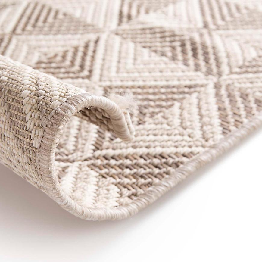 Dywan Indy to doskonały wybór dla osób, które cenią sobie nowoczesny design i praktyczność. O wymiarach 170 cm długości i 120 cm szerokości, idealnie wkomponuje się zarówno w przestrzenie wewnętrzne, jak i zewnętrzne, dzięki czemu może być wykorzystywany na tarasach, balkonach, a także w salonie, sypialni czy jadalni. Geometryczny deseń dywanu nadaje mu subtelnej elegancji i uniwersalności, co sprawia, że świetnie pasuje do wnętrz w stylu minimalistycznym, skandynawskim czy industrialnym.