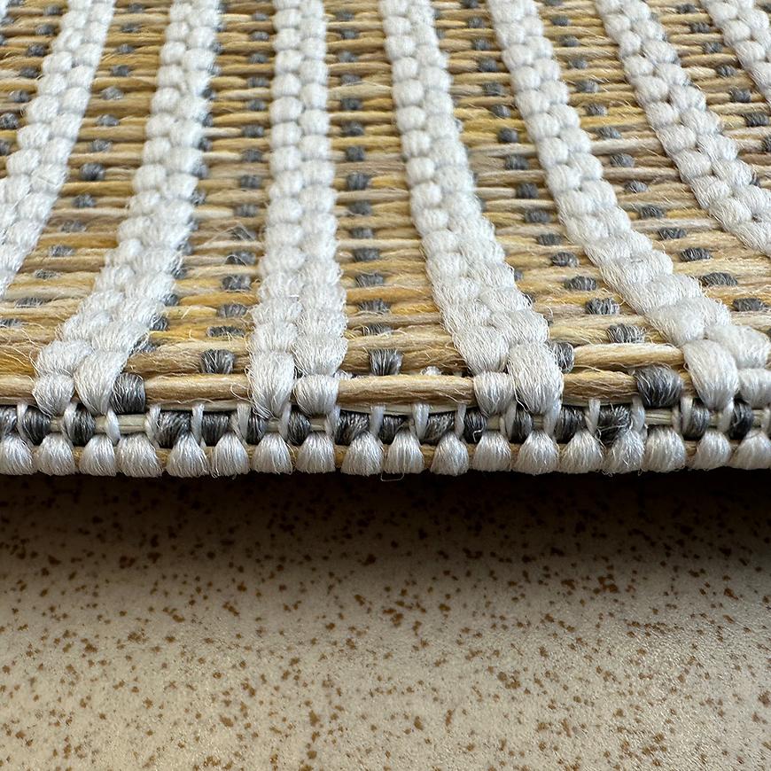 Dywan wykonany jest z 100% z polipropylenu, sposób plecionej maty jest to tak zwane płaskie tkanie (sizal look), dzięki czemu jest wytrzymały i odporny, w szczególności na działanie promieni słonecznych. Charakterystyczną cechą jest brak strzyżonego runa co sprawia, że dywan jest łatwy w utrzymaniu czystości.