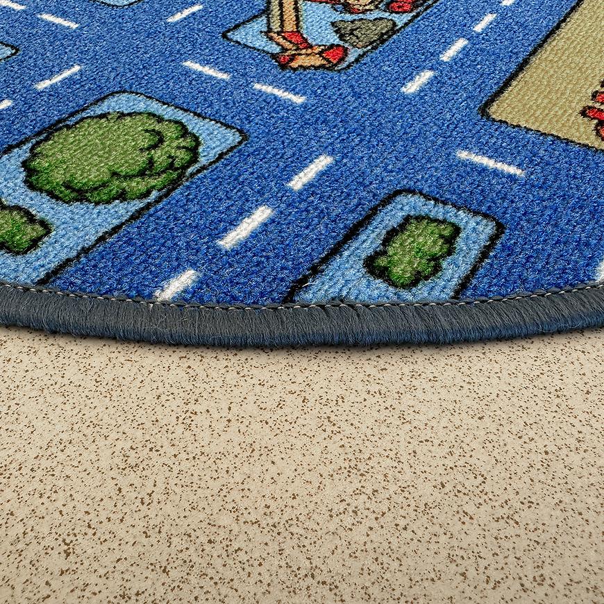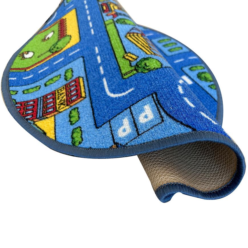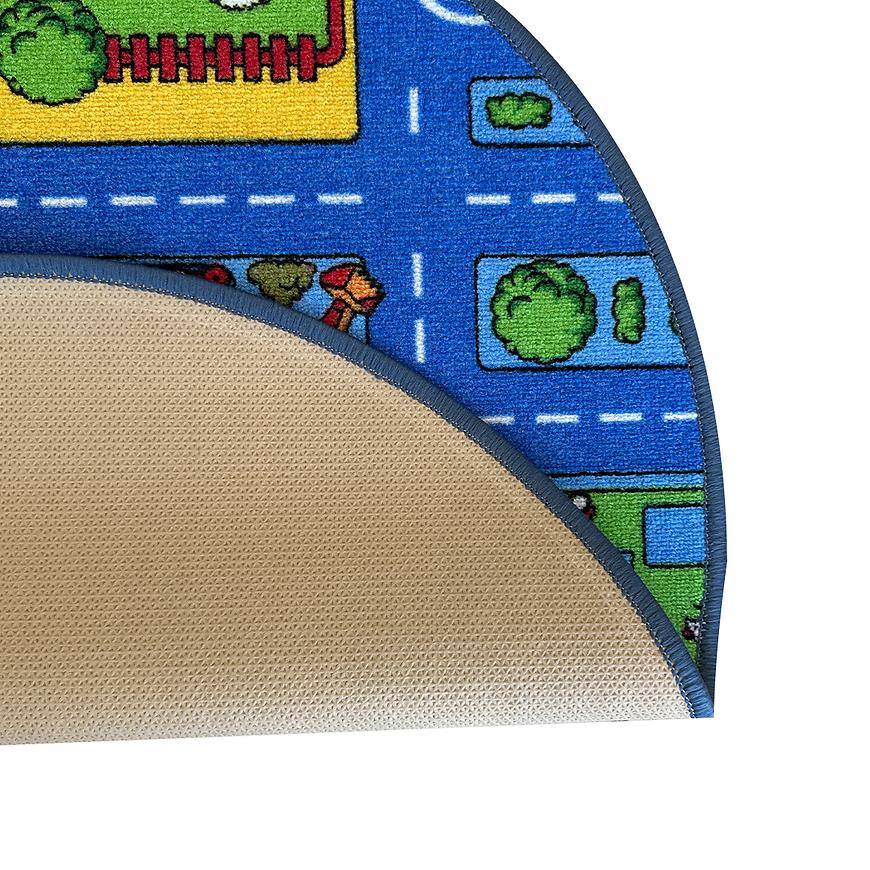 Okrągły kształt dywanu dodaje mu uroku i harmonijnie komponuje się z różnymi aranżacjami wnętrza, szczególnie w pokoju dziecięcym. Nie tylko zachwyca swoim wyglądem, ale także spełnia praktyczne funkcje, dzięki spodowi antypoślizgowemu, który utrzymuje dywan na miejscu, nawet podczas najbardziej intensywnych zabaw.