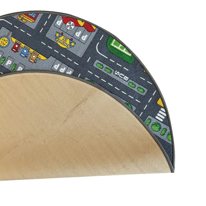 Okrągły kształt dywanu dodaje mu uroku i harmonijnie komponuje się z różnymi aranżacjami wnętrza, szczególnie w pokoju dziecięcym. Nie tylko zachwyca swoim wyglądem, ale także spełnia praktyczne funkcje, dzięki spodowi antypoślizgowemu, który utrzymuje dywan na miejscu, nawet podczas najbardziej intensywnych zabaw.