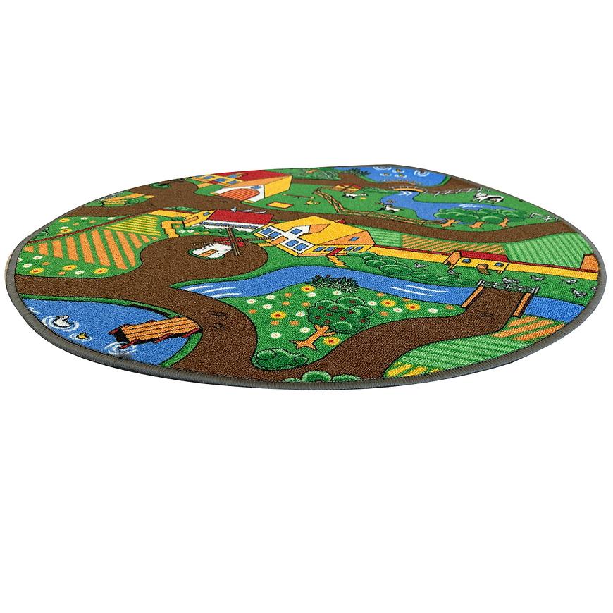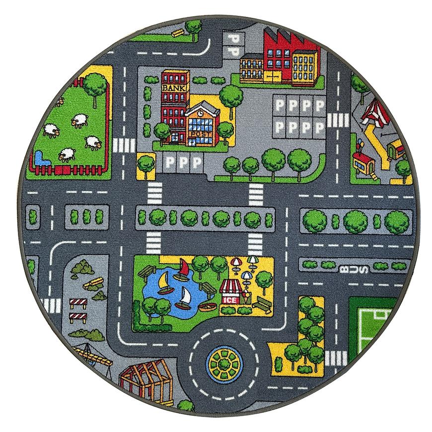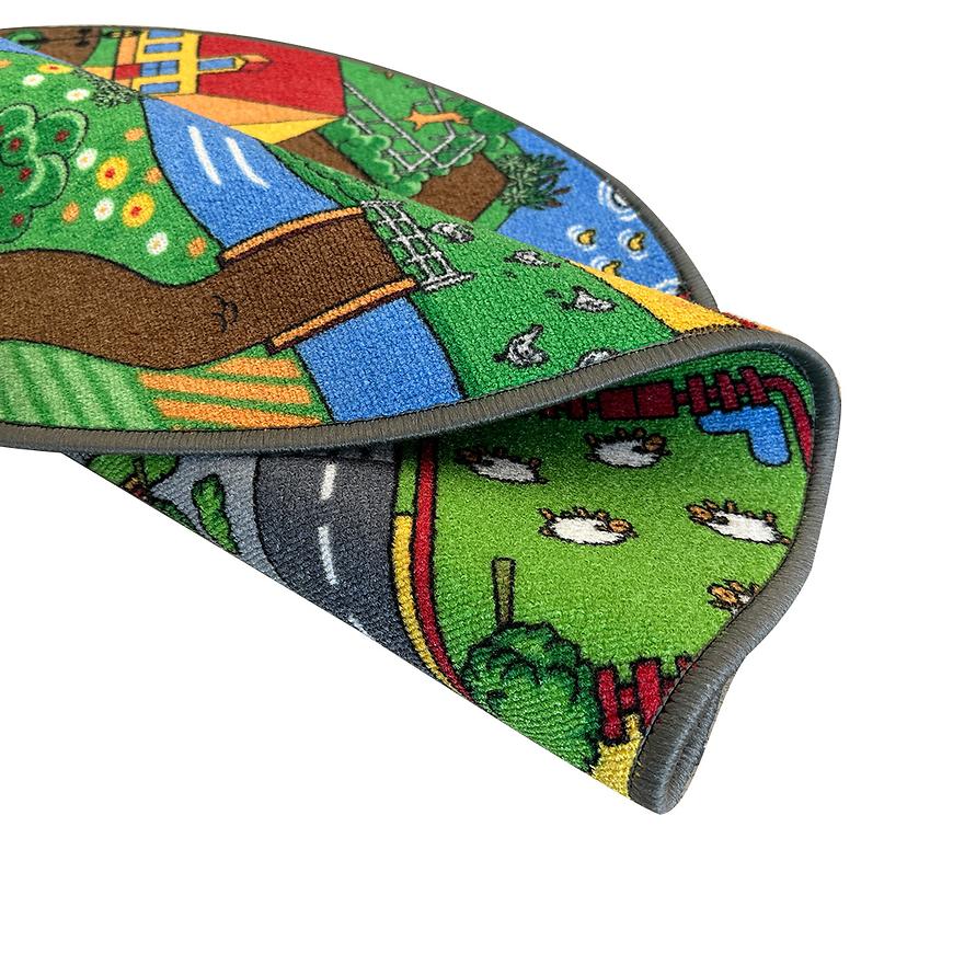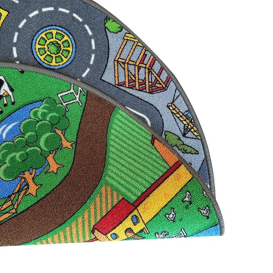 Okrągły kształt dywanu dodaje mu uroku i harmonijnie komponuje się z różnymi aranżacjami wnętrza, szczególnie w pokoju dziecięcym. Nie tylko zachwyca swoim wyglądem, ale także spełnia praktyczne funkcje, dzięki spodowi antypoślizgowemu, który utrzymuje dywan na miejscu, nawet podczas najbardziej intensywnych zabaw.