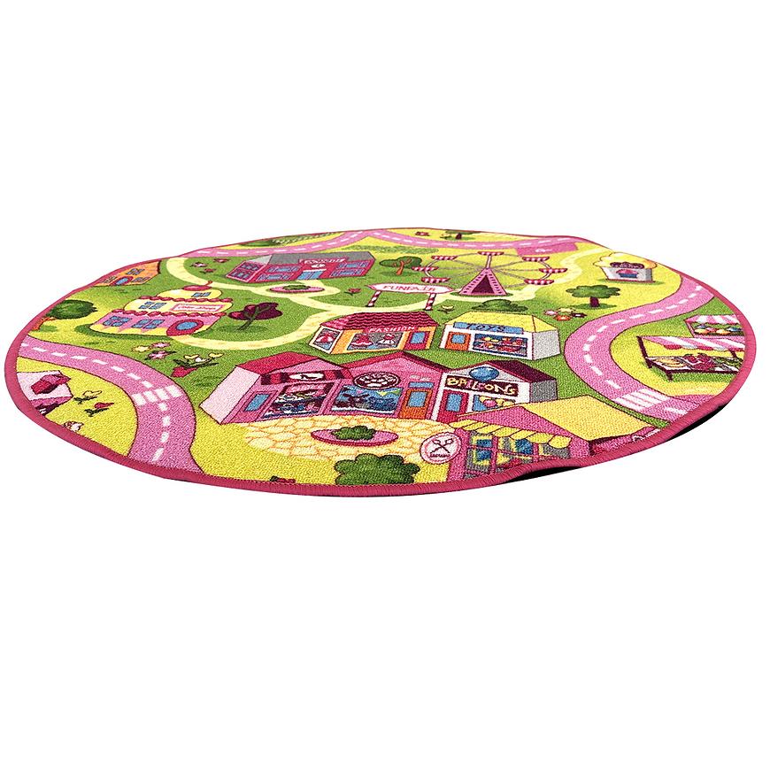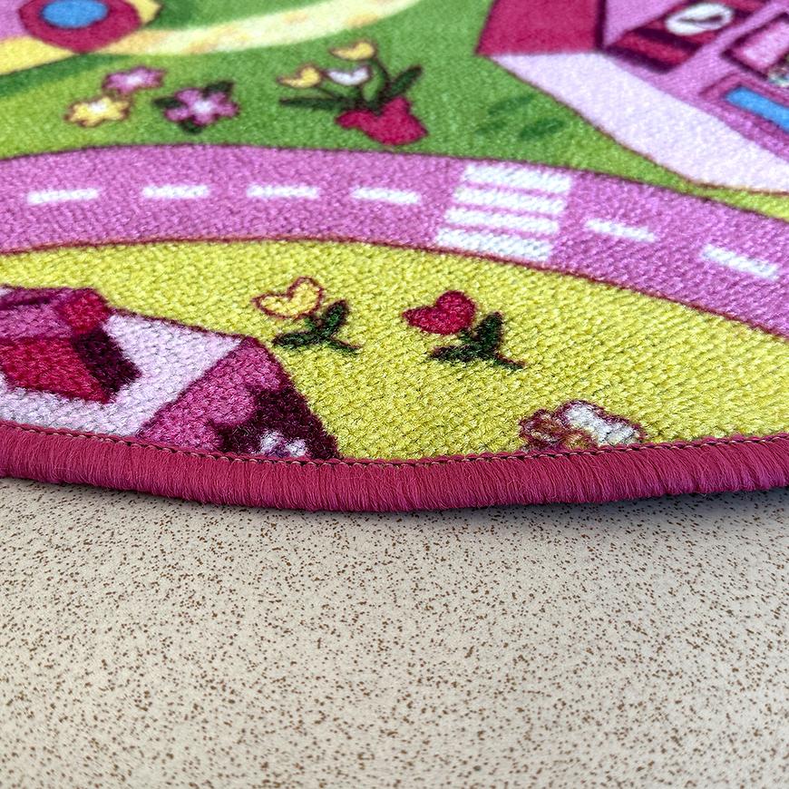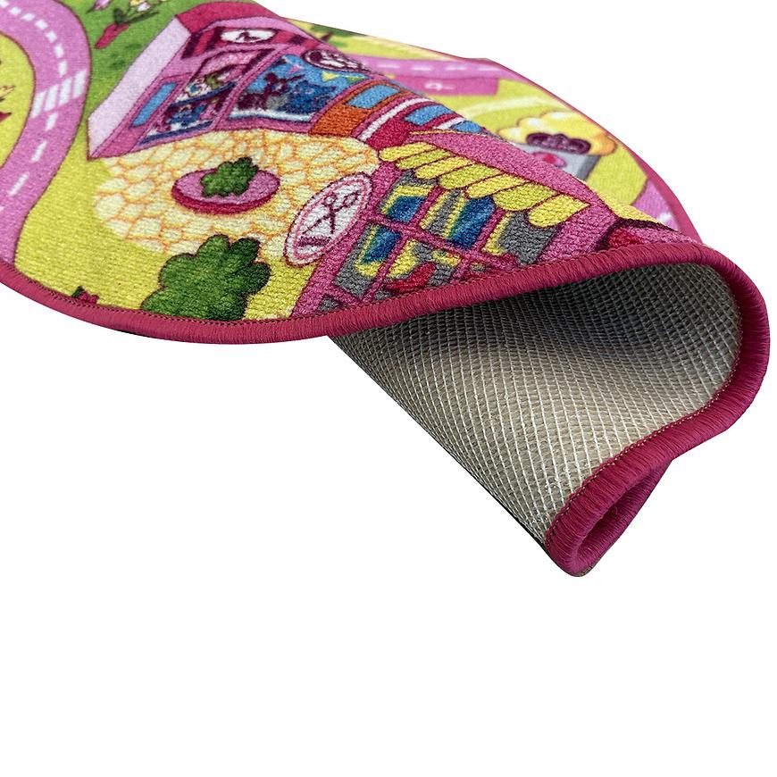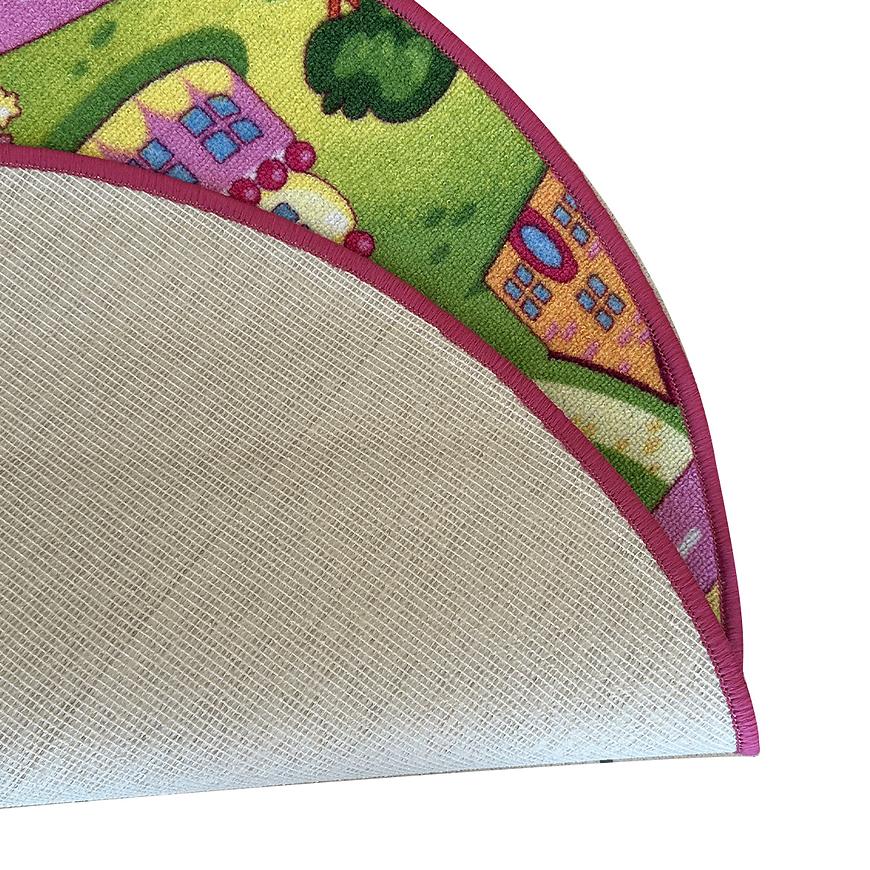 Okrągły kształt dywanu dodaje mu uroku i harmonijnie komponuje się z różnymi aranżacjami wnętrza, szczególnie w pokoju dziecięcym. Nie tylko zachwyca swoim wyglądem, ale także spełnia praktyczne funkcje, dzięki spodowi antypoślizgowemu, który utrzymuje dywan na miejscu, nawet podczas najbardziej intensywnych zabaw.