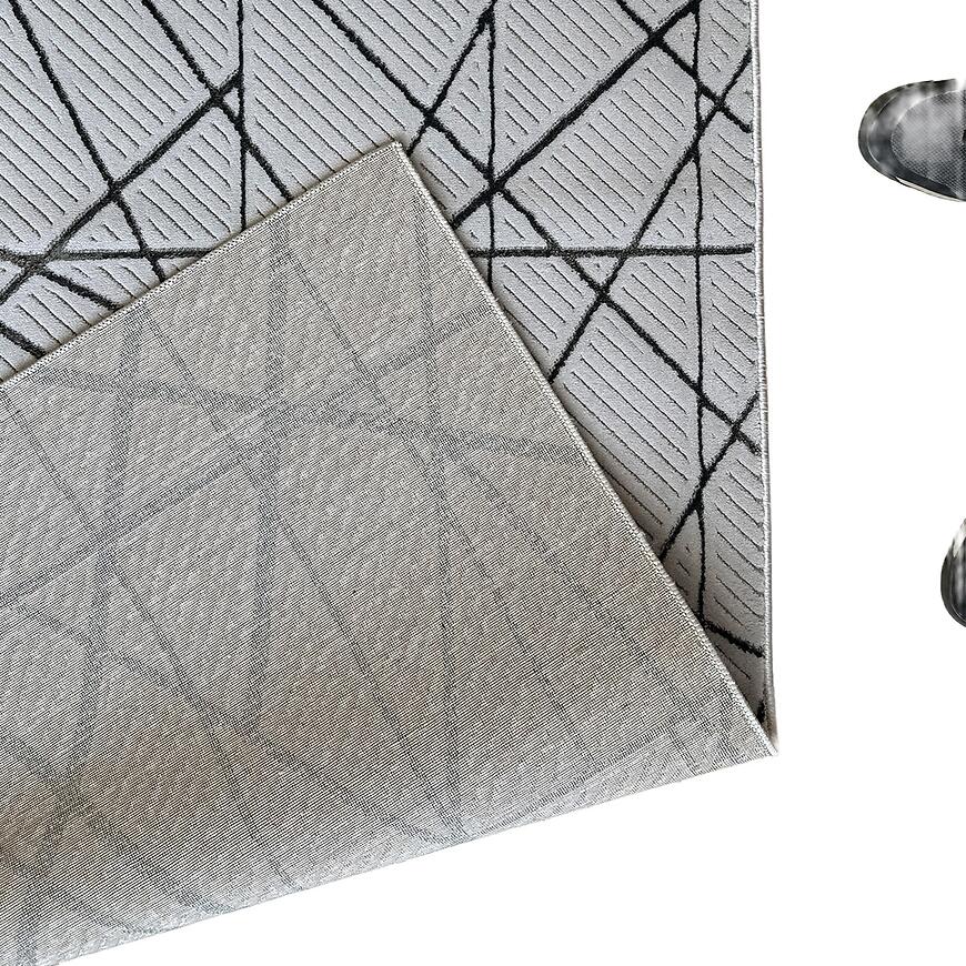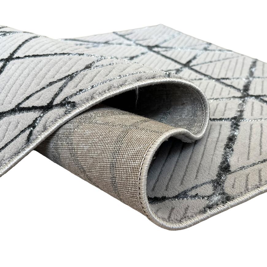 Dywan Kingston 9136a w rozmiarze 140 × 190 cm to propozycja dla osób poszukujących eleganckiego i nowoczesnego dodatku do wnętrz. Połączenie kolorów srebrnego i szarego z abstrakcyjnym wzorem nadaje wnętrzu subtelnej elegancji i pasuje do różnych aranżacji – od minimalistycznych po designerskie.