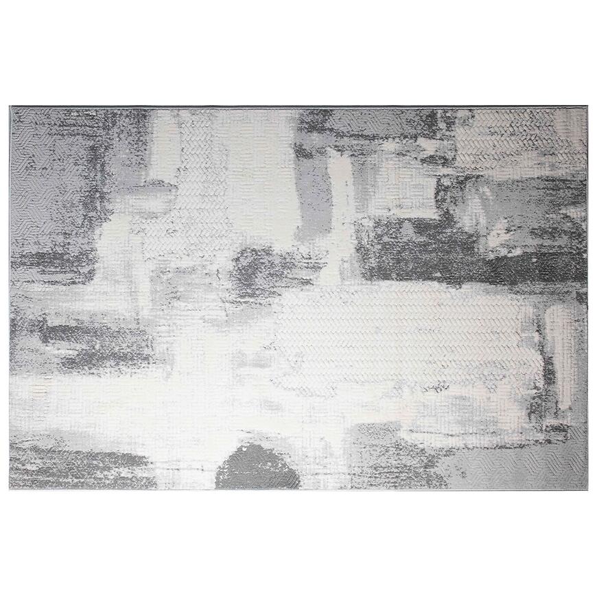 Dywan Merlyne w połączeniu kremowego i jasnoszarego koloru to elegancki dodatek do salonu, który wprowadza przytulność i nowoczesny charakter wnętrza. Prostokątny dywan o wymiarach 140x190 cm z abstrakcyjnym wzorem nadaje aranżacji dekoracyjny akcent i harmonijnie współgra z nowoczesnymi meblami oraz dodatkami.