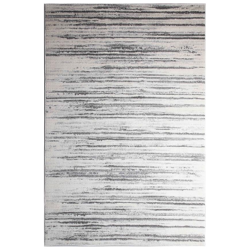 Dywan Merlyne w połączeniu kremowego i jasnoszarego koloru to elegancki dodatek do salonu, który wprowadza przytulność i nowoczesny charakter wnętrza. Prostokątny dywan o wymiarach 140x190 cm z abstrakcyjnym wzorem nadaje aranżacji dekoracyjny akcent i harmonijnie współgra z nowoczesnymi meblami oraz dodatkami.